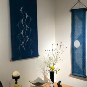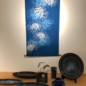 昨今は残暑が厳しく、気持ちの良い秋の期間が短い気がしますが…今回は秋の気配が感じられるモチーフを集め、「藍の詩(うた)」と題して展示をいたします。