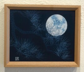 今月は、太陽や月が昇り輝いている様などをイメージした作品を中心に、丸いモチーフの作品群を展示していますので、ぜひご高覧ください。
