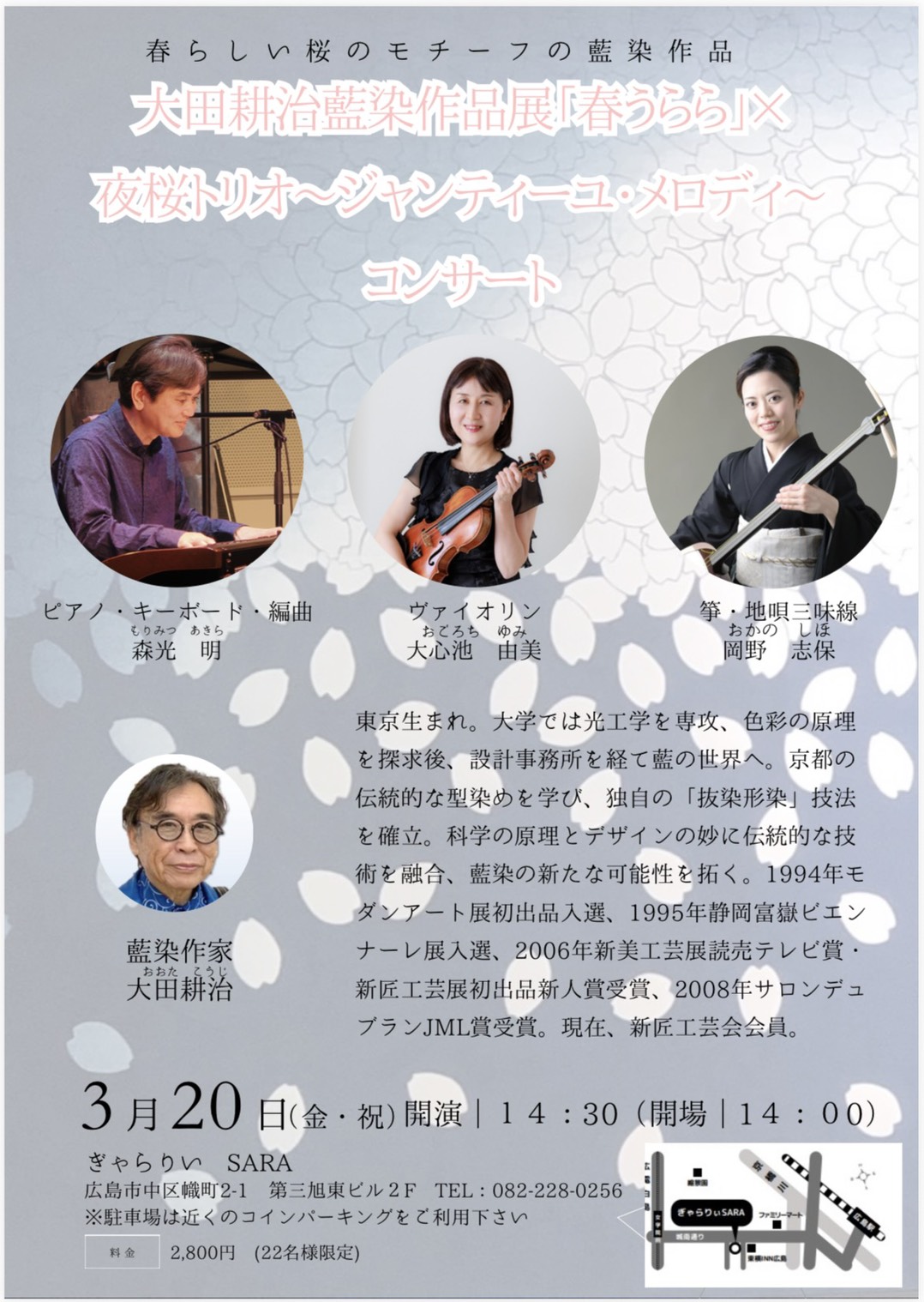 【イベント:3月20日】藍染作品展×夜桜トリオ~ジャンティーユメロディ~コンサート