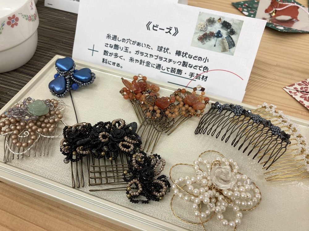 手作りのビーズアクセサリーも展示されていました。