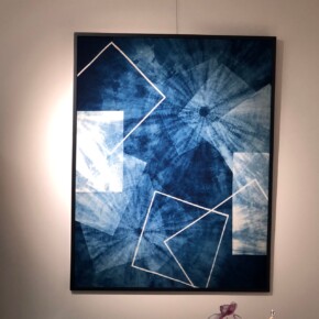 「藍型抜染」の技法を使い、藍色を染め抜きながら、絵画のような表現を追求した作品をご覧いただけます。