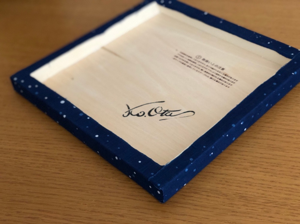藍で染め上げた綿素材の生地をベニヤのパネルに貼ってあります。布の質感がそのまま感じられます。 |
